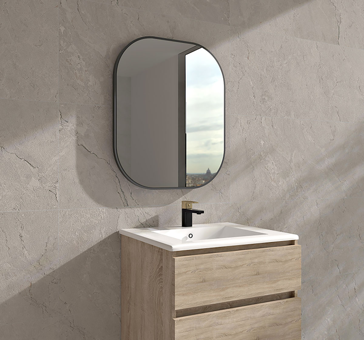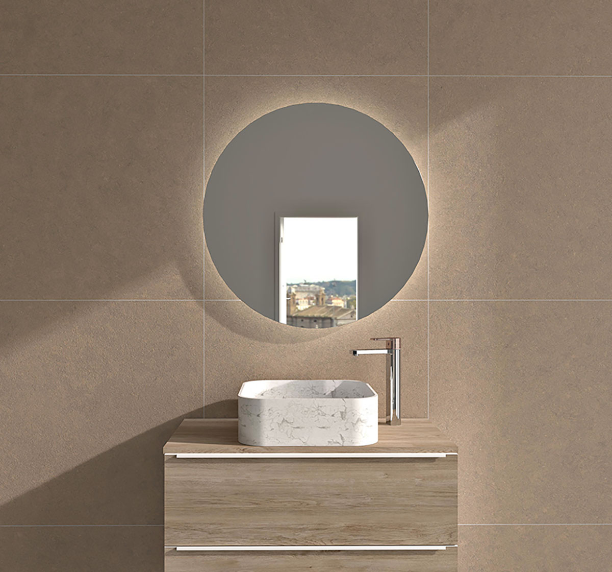 En cuanto a las formas, también destacan el espejo ovalado con luz led como BAHO LYS.